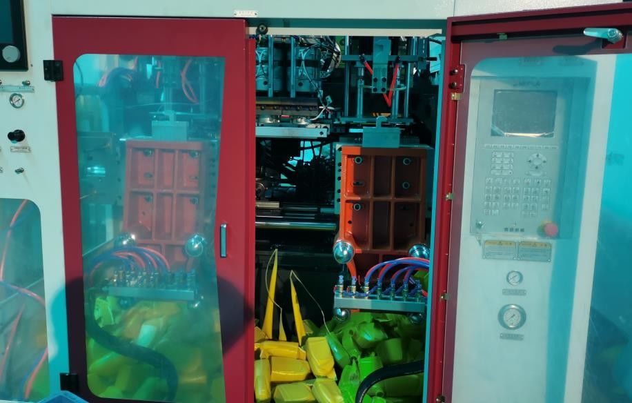 Grande immagine :  Macchina per stampare a soffio bottiglie di lubrificante in HDPE a tre strati da 1L